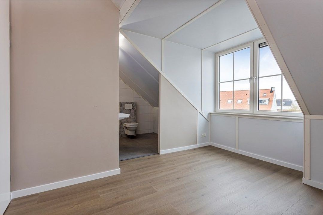 Riante master bedroom, veel ramen, heerlijk licht, ruimte genoeg voor een flinke kastenwand en king size bed. De badkamer is ruim van opzet, ook voorzien van vloerverwarming en uitgerust met regendouche en wastafel meubel. Separaat toilet. Aan de achterzijde twee slaapkamers van goed formaat.