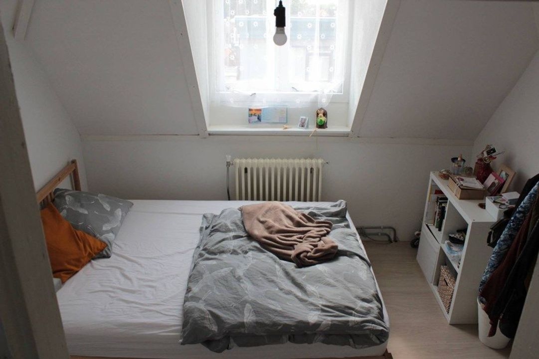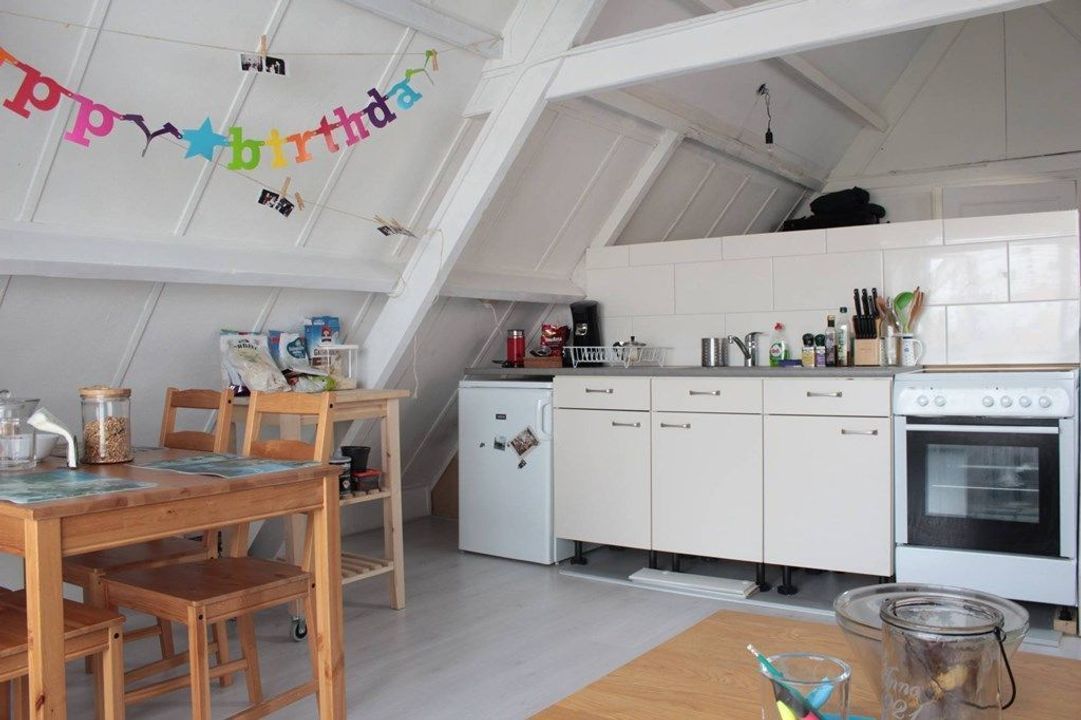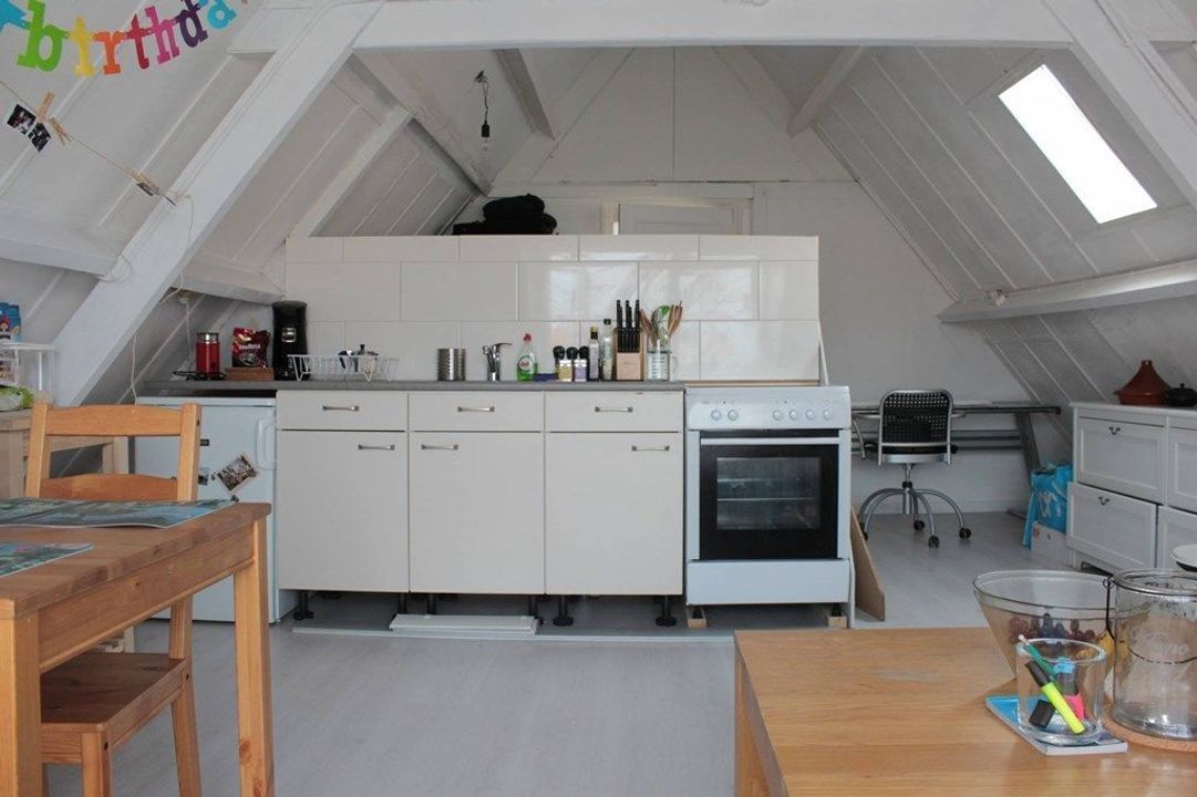 Shared entrance on the ground floor. Stairs to the private entrance on the top floor. Bright living room with open kitchen with appliances such as refrigerator, freezer, hob, stove, hood, oven and microwave. Bedroom with double bed. Shared bathroom with shower and sink, washer and dryer. Shared separate toilet.