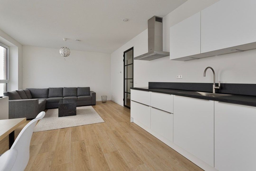 De woonkamer heeft een spectaculair uitzicht over Den Haag, veel ramen, veel licht inval, wel heel privé, er kijkt niemand naar binnen. En voor de zonnige dagen een flink terras, natuurlijk ook weer met adembenemend uitzicht. De nieuwe keuken is uitgerust met: koelkast, vriezer, vaatwasser, combi oven, gootsteen en inductie kookplaat met afzuigkap.