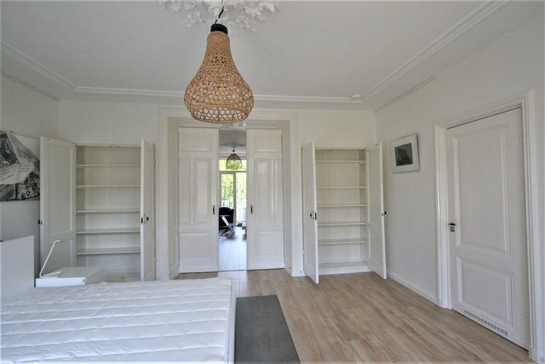 Entree op straatniveau, trap naar de 2e etage, entree van de woning. Riante kamer en suite met prachtige plafonds en heerlijk licht door de grote ramen. De woonkamer heeft toegang tot het dakterras, evenals de keuken. De aparte keuken is uitgerust met koelkast, vriezer, vaatwasser, wasmachine, gasfornuis en combi-oven/magnetron.