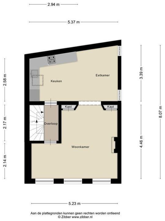 Trap naar de eerste verdieping, de gang geeft toegang tot de woonkamer, de keuken en de trap naar de top verdieping. Lichte woonkamer met geweldig uitzicht op de gracht, in de zomer komen hier talloze bootjes voorbij varen, een heerlijke sfeer. Wanner je de fantasie even de ruimte geeft zie je zo een zeilschip van de VOC voorbij varen. De woonkamer loopt door in de ruime lichte keuken. De keuken is uitgerust met Koelkast, vriezer, vaatwasser, magnetron, oven gaskookplaat met afzuigkap en gootsteen.
