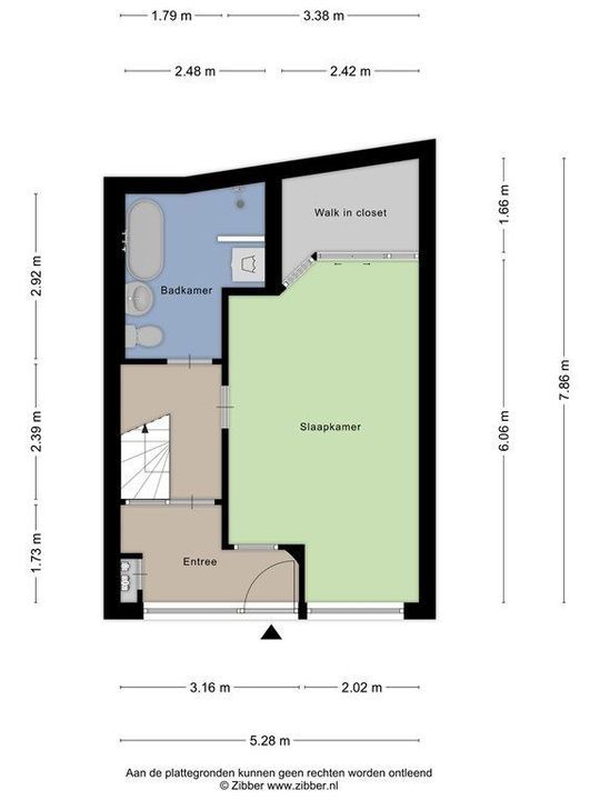 Entree op straat niveau, voor het huis staat een bankje om van het uitzicht te genieten. Tochtportaal, gang. De gang geeft toegang tot de slaapkamer, badkamer en klassieke steile trap. De slaapkamer is licht, ruime en heeft via en-suite deuren toegang tot de inloopkast.