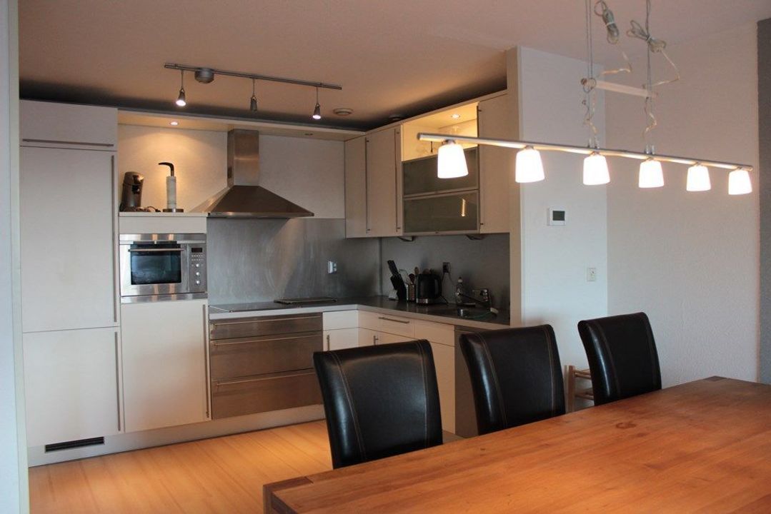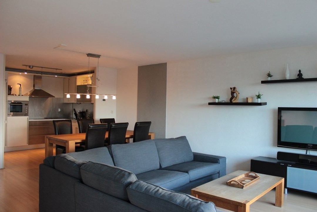 De ruime lichte woonkamer heeft een oppervlakte van ca. 36m2. De keuken is open en beschikt over alle moderne apparatuur zoals een vaatwasser, koelkast/vriezer, combi-oven en inductie-kookplaat. Het appartement beschikt over 2 slaapkamers: 1e slaapkamer ca. 14m2, 2e slaapkamer ca. 10m2.De badkamer (ca.8m2) is voorzien van een ligbad en een douchecabine. Separate toilet in de hal. Zonnig terras van 6m2!