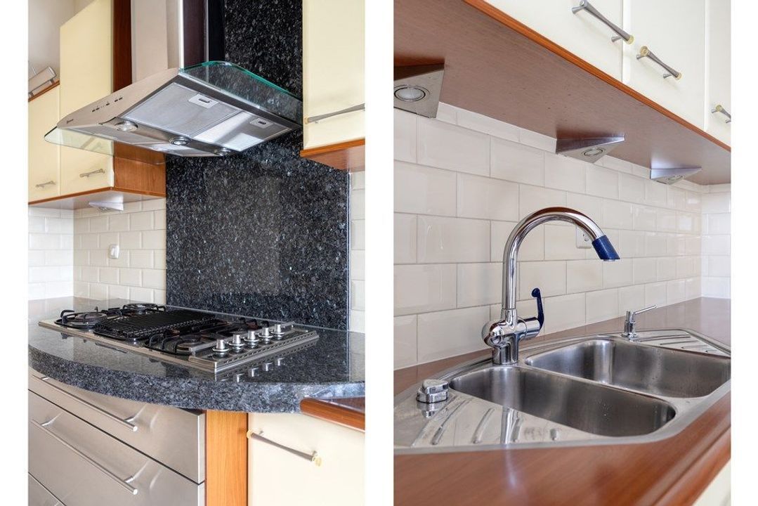 Het appartement beschikt over een riante aparte keuken met gasfornuis, afzuigkap, koelkast, vriezer, magnetron/oven en vaatwasser. De wasruimte is voorzien van een wasmachine en droger en dient tevens als ruime bergruimte. Vanuit de gang is een gastentoilet bereikbaar, terwijl de ruime privébadkamer is voorzien van een bad, een ruime douche, een hangtoilet en twee aparte wastafels met opbergkasten.